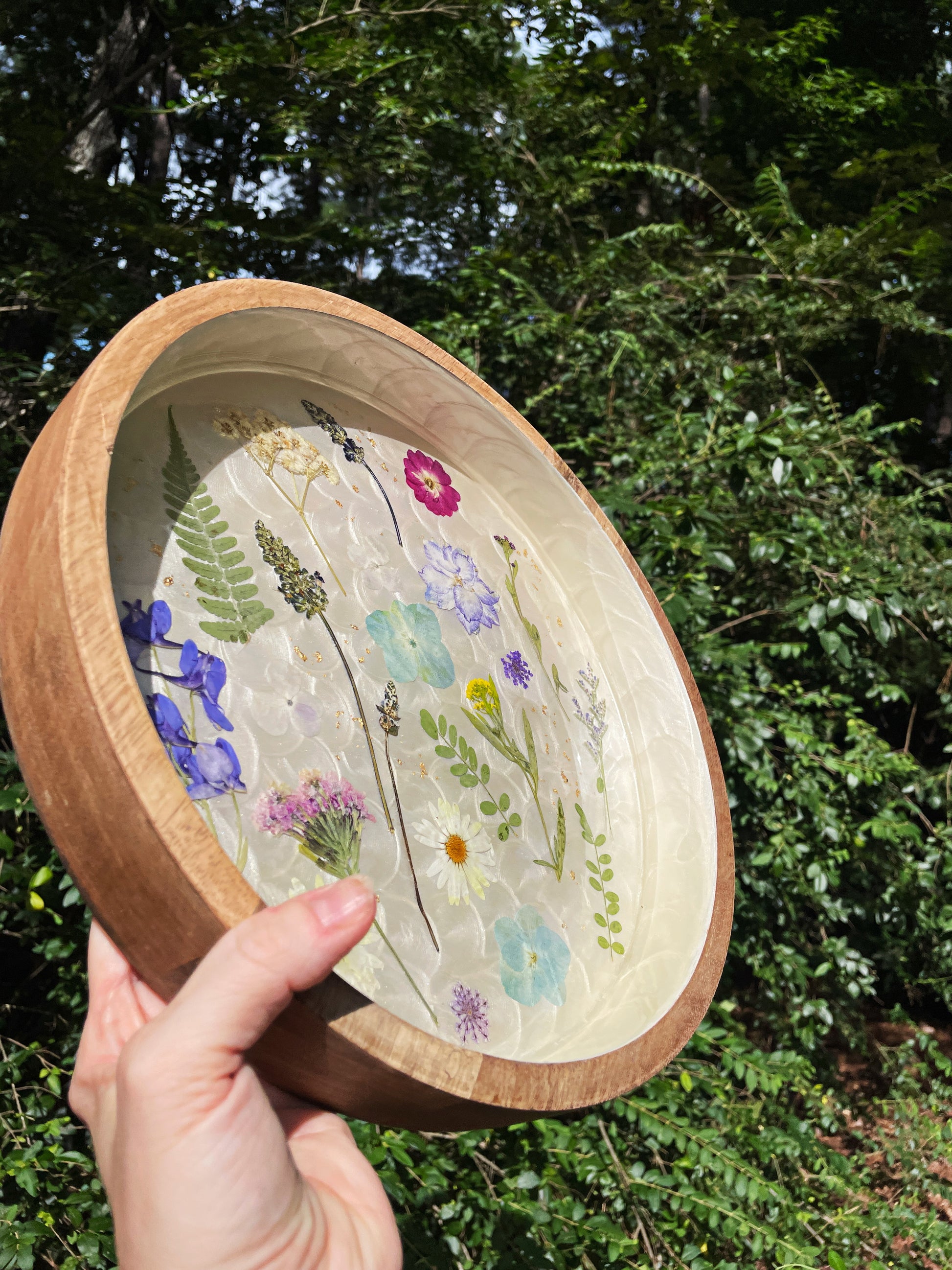Round Wooden Floral Tray - Pressed Flower Coffee Table Tray